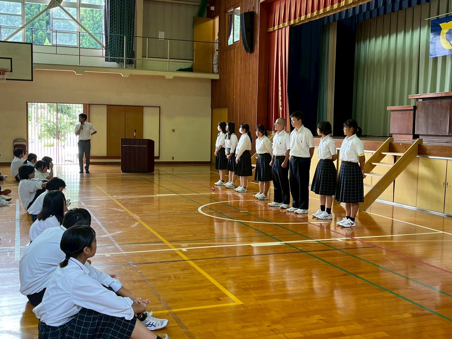 壮行会では、出場選手の決意表明や、教頭先生、生徒会長からの激励の言葉が贈られ、出場選手の士気を高めることができました。これから出場する選手たちは、日々の練習の成果を発揮し、最高のパフォーマンスを見せてくれることを期待しています。