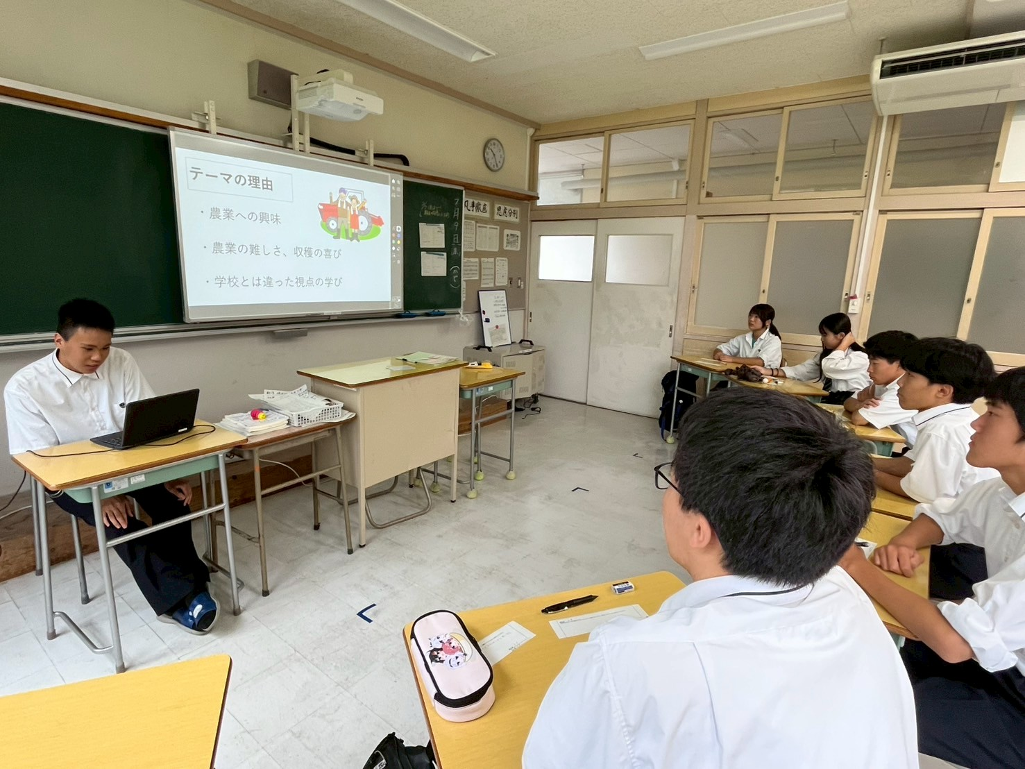 地域のことや農業を自分ごととして捉え、課題解決に向け誰かを笑顔にするためにテーマを設定し、探求活動を進めています。
